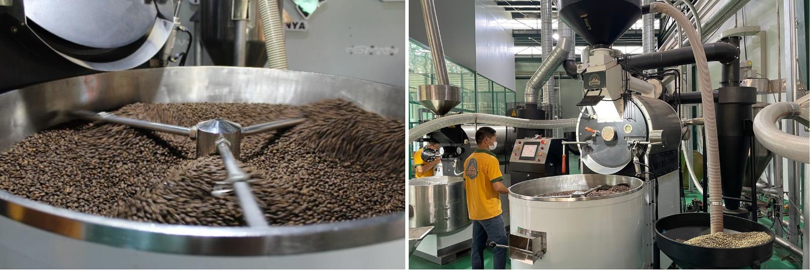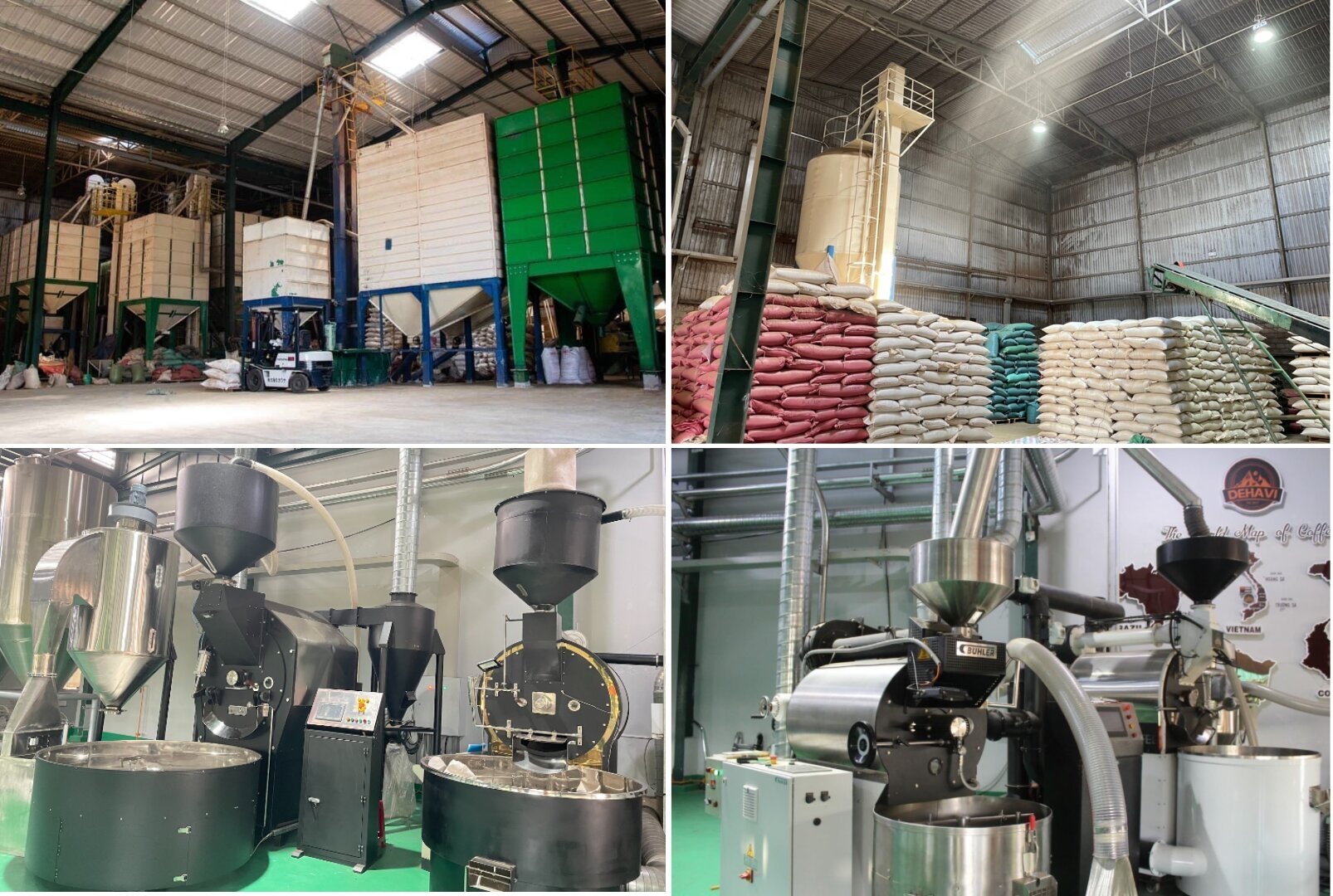 ▪️ Hàng được tải trực tiếp từ kho nguyên liệu thông qua bồn tịnh vào 4 máy rang (120kg, 100kg, 30kg và 20kg)