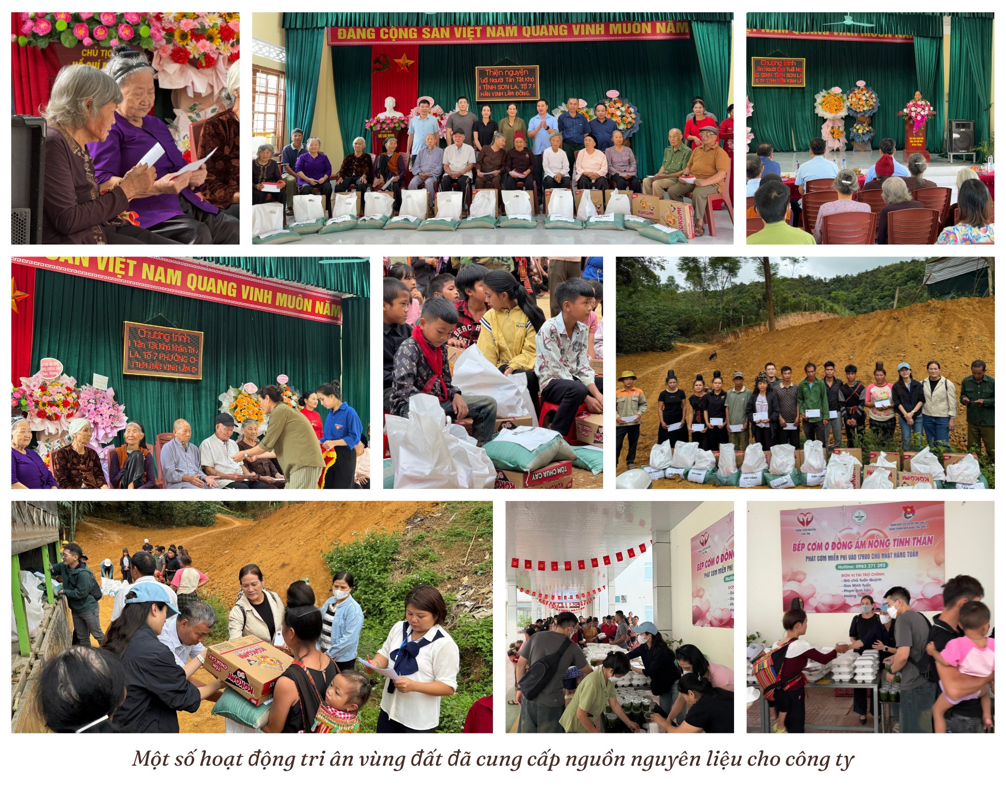 Ở tất cả các vùng nguyên liệu chủ lực, công ty luôn hướng đến việc kiến tạo các giá trị bền vững cho con người và vùng đất - nơi đã cung ứng nguồn nguyên liệu cho mình, nơi đã góp phần dù lớn hay nhỏ, dù trực tiếp hay gián tiếp vào sự phát triển của công ty. Từ Lâm Đồng, Sơn La hành trình tri ân và kiến tạo giá trị cho các vùng nguyên liệu sẽ còn được tiếp nối. Công ty TNHH Cà Phê Hân Vinh gửi lời cảm ơn chân thành đến người dân, chính quyền địa phương, các đại lý thu mua và Bếp ăn 0 đồng của nhóm Thiện nguyện Vạn Tâm cũng như Bệnh viện đa khoa tỉnh Sơn La đã hỗ trợ và kết nối để chuyến ghé thăm có được nhiều hoạt động ý nghĩa.